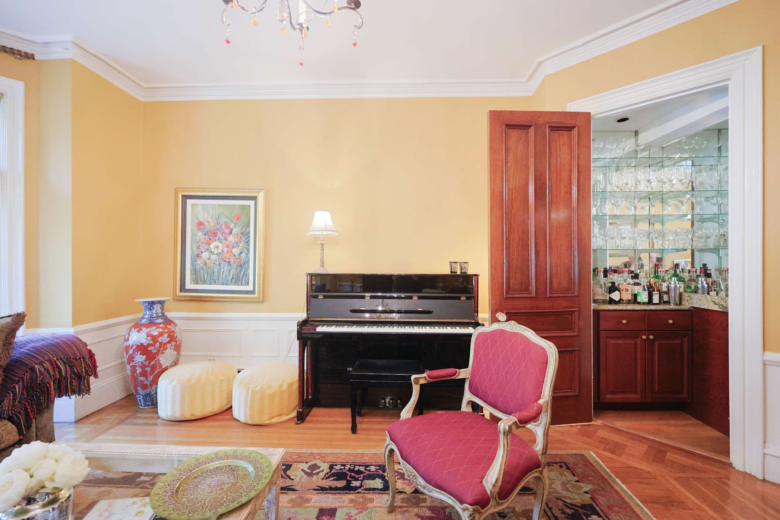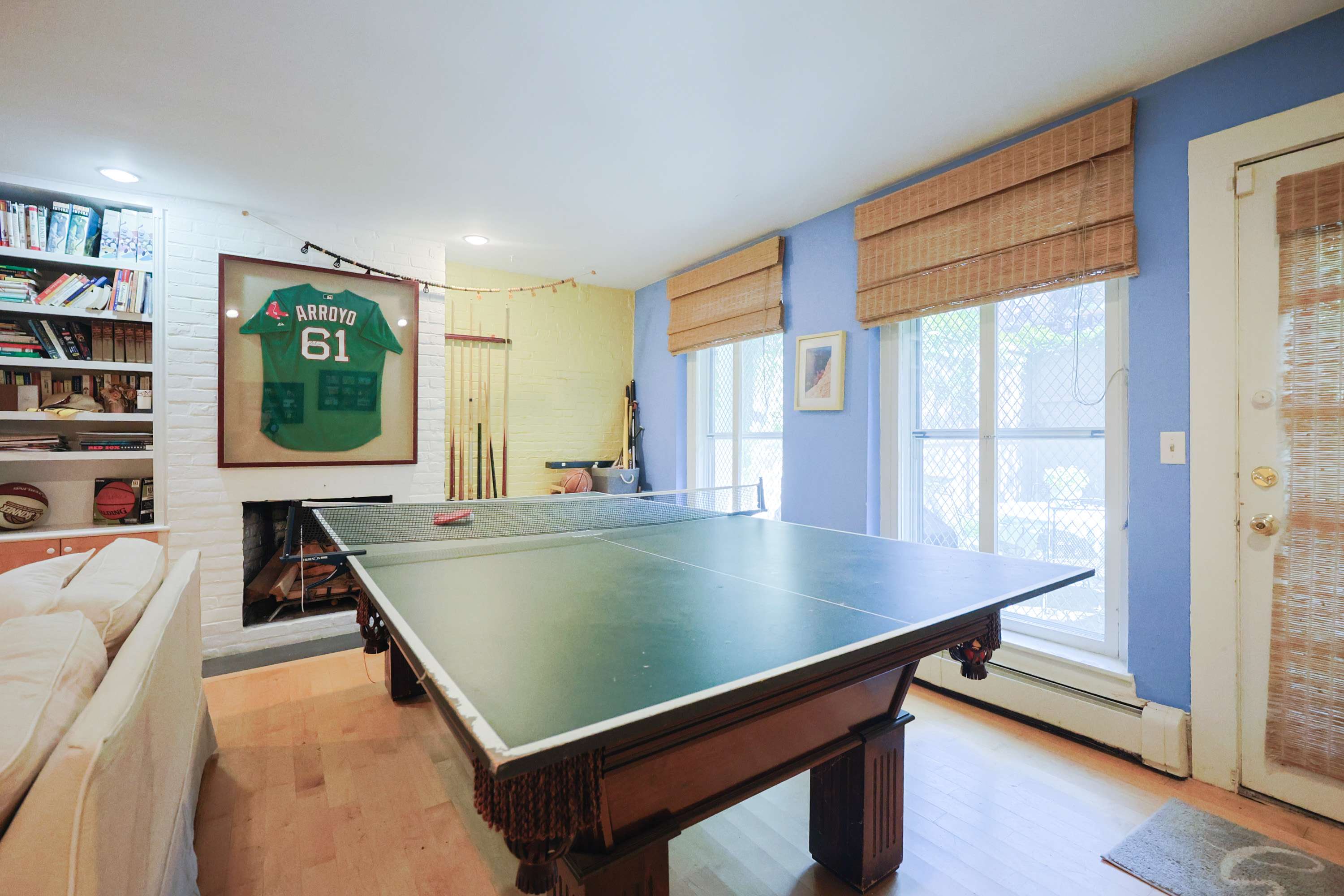 The home’s soaring ceilings, oversized windows, and rich hardwood floors throughout are complemented by beautiful rugs, original marble in the entryway, and six decorative fireplaces, creating an atmosphere that is both warm and sophisticated. Additional conveniences include a washer and dryer on the top floor, multiple Smart TVs throughout the home (basement, kitchen, family room, and master bedroom) to log into your favorite streaming apps, basic cable, and central air.